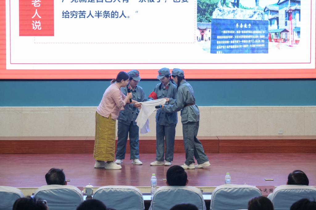 活动现场,获得一等奖的六个团队轮流展示。各团队主讲人授课形式生动多样,他们有的身着军装,还原战斗场景;有的利用PPT,将重大历史事件的视频、图片呈现在大家面前。在内容方面,各团队立足思政课相关章节和内容,结合新时代思想理论文化重大主题和时事热点,开展教学设计,精心组织授课内容,或激情澎湃,或侃侃而谈,丰富的教学内容、灵活的展现形式、流畅的语言表达,以独特的视角阐述了青年学子的使命与担当。