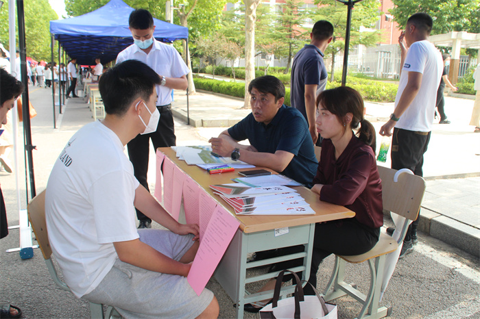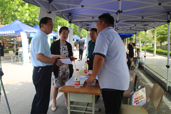 党委副书记、院长徐运国,副院长邹翠兰与招聘企业交流