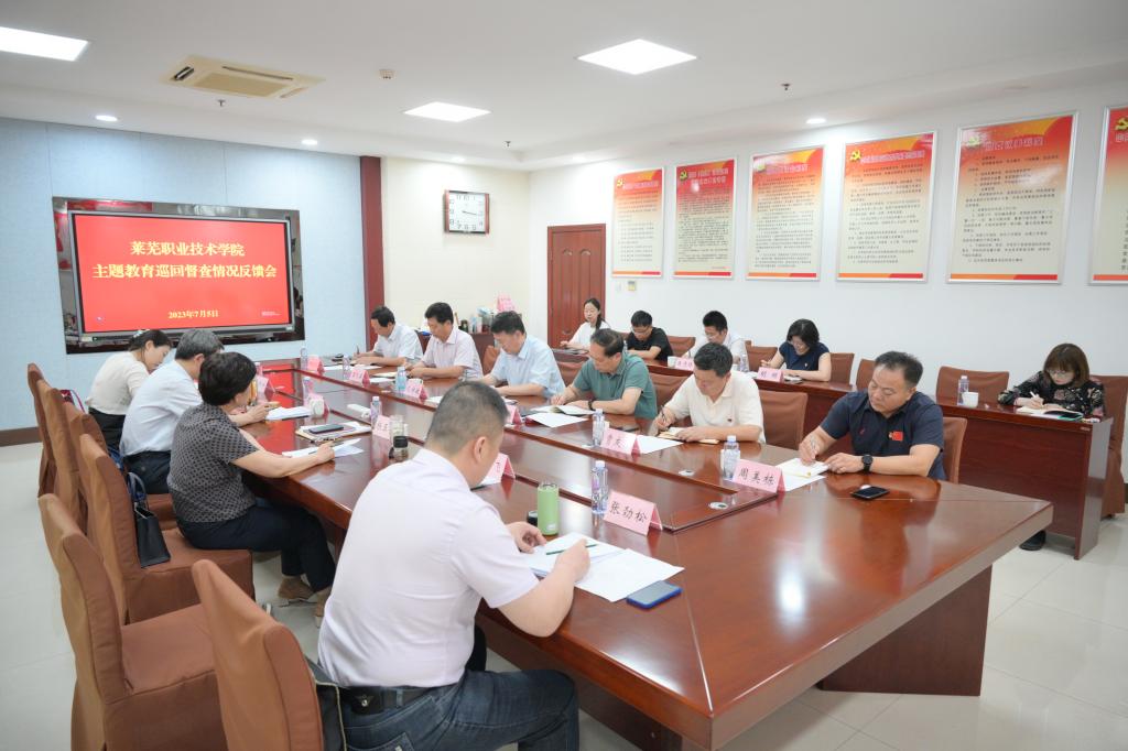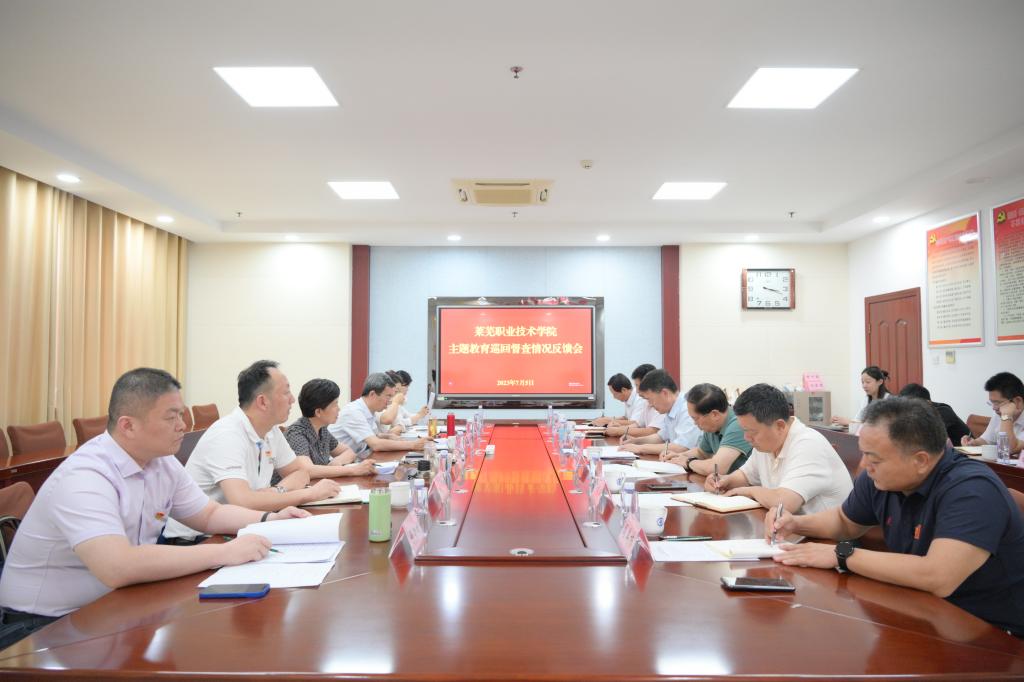 根据市委主题教育领导小组办公室有关工作要求,7月5日,市委主题教育第十五巡回指导组对学校主题教育开展情况进行巡回督查,并召开巡回督查情况反馈会。第十五巡回指导组组长杨玉华、副组长张涛一行到会指导。学校党委班子成员出席会议,主题教育领导小组的部分同志参加会议。党委书记孔祥敏主持会议。