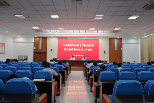 为深入贯彻全市党风廉政警示教育大会精神,落实《中共济南市纪委办公厅关于开展全市党风廉政警示教育月活动的通知》要求,结合主题教育和市委巡察部署安排,7月24日,学校召开党风廉政警示教育工作会议,党委书记孔祥敏出席会议并讲话,党委副书记、院长徐运国主持会议,党委班子成员、中层正职参加会议。