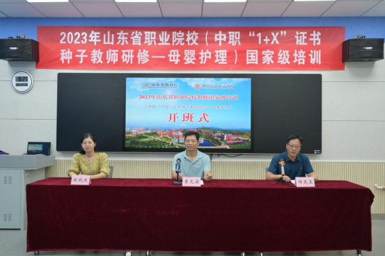 8月4日上午,学校举行2023年度山东省教师素质提高计划中职“1+X”证书种子教师研修—母婴护理国家级培训开班式。副院长李允实出席开班式并讲话,教师发展中心、医学技术与护理系相关负责同志出席开班式以及来自全省中职学校的20名参训教师参加开班式。