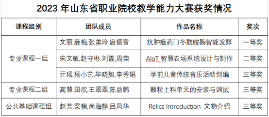 近日,山东省2023年教师教学能力大赛决赛落下帷幕,我校5支参赛队伍全部获奖,其中一等奖1项,二等奖1项,三等奖3项,成绩优异。