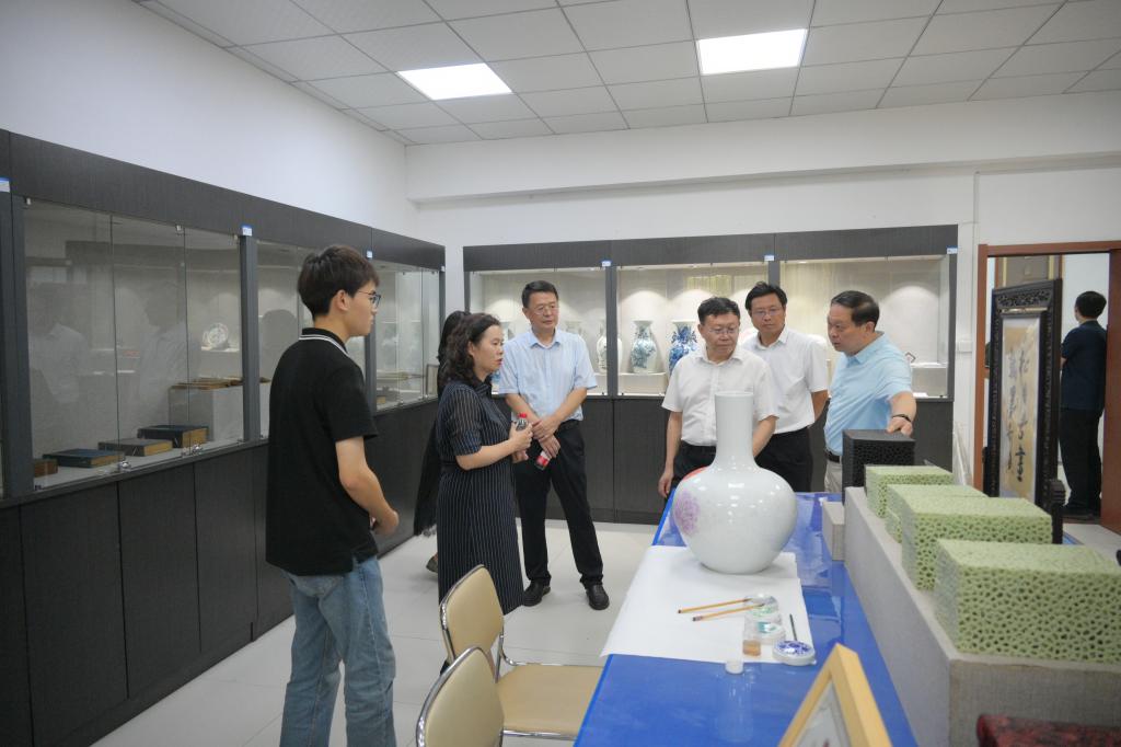 座谈会前,林松柏一行先后参观了初心馆、大学生事务服务中心、人工智能协同创新中心、教育系实训室、文物与艺术系实训室,查看了解学校文化建设、学生管理、职业技能大赛、特色专业建设等情况。