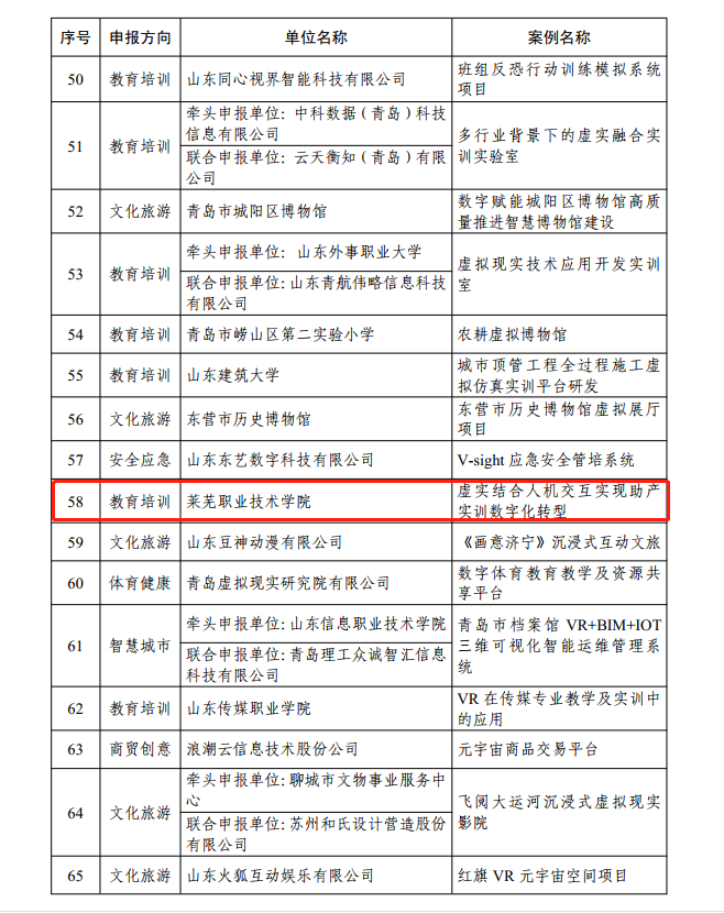 近日,省工业和信息化厅、省教育厅等五部门联合印发《关于公布山东省2023年度虚拟现实先锋应用案例的通知》,学校医学技术与护理系申报的《虚实结合人机交互实现助产实训数字化转型》案例被评为省级先锋应用案例。