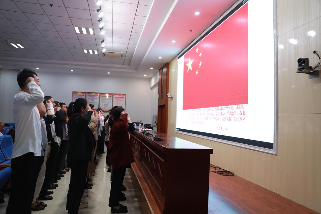 全体新教师面向国旗庄严宣誓,带着满满的收获和殷殷的期待,新教师正式踏上教书育人新征程。