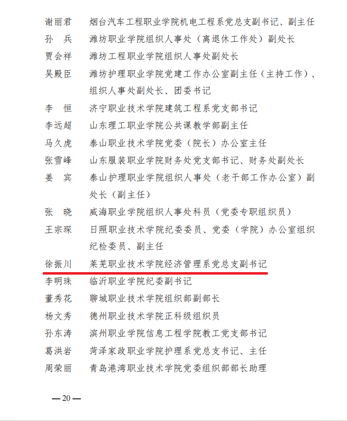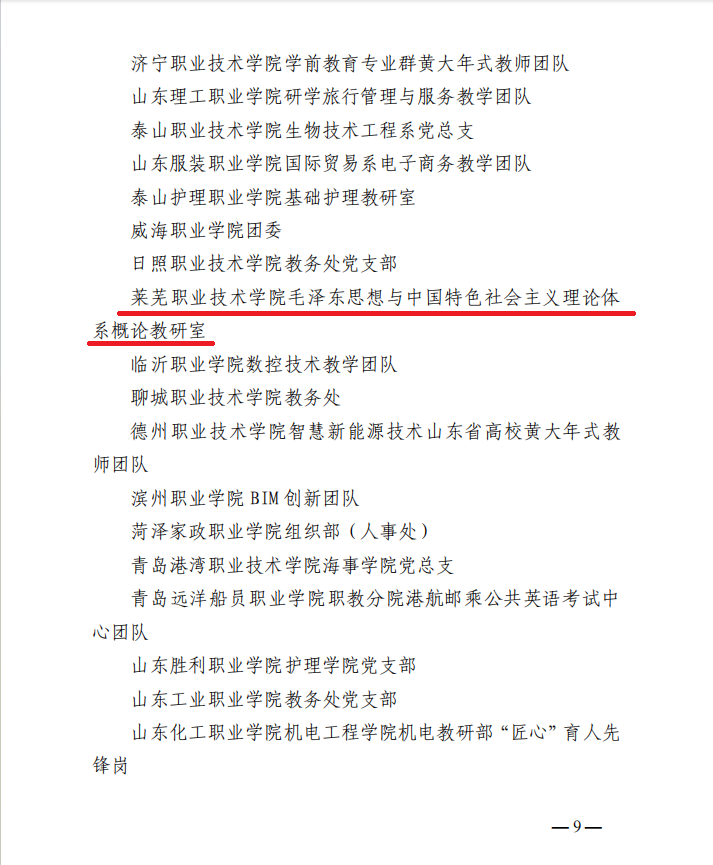 日前,山东省委教育工委下发《中共山东省委教育工委关于命名山东省教育系统共产党员先锋岗和党务工作先锋的通知》(鲁教工委字〔2023〕23号),学校毛泽东思想与中国特色社会主义理论体系概论教研室获得“山东省教育系统共产党员先锋岗”称号,徐振川获得“山东省教育系统党务工作先锋”称号。