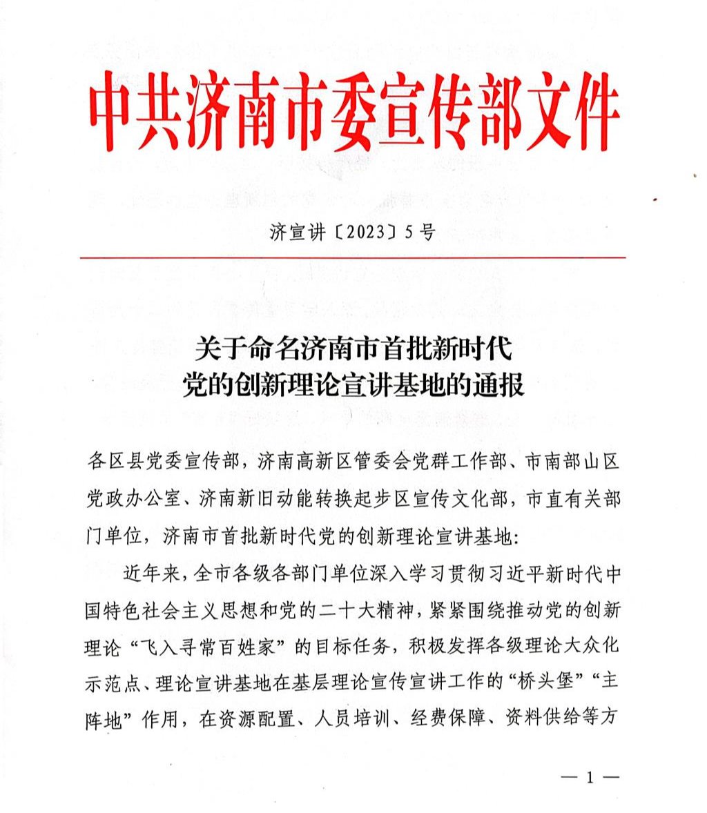 日前,中共济南市委宣传部发布了《关于命名济南市首批新时代党的创新理论宣讲基地的通报》,学校获评“济南市首批新时代党的创新理论宣讲基地”。