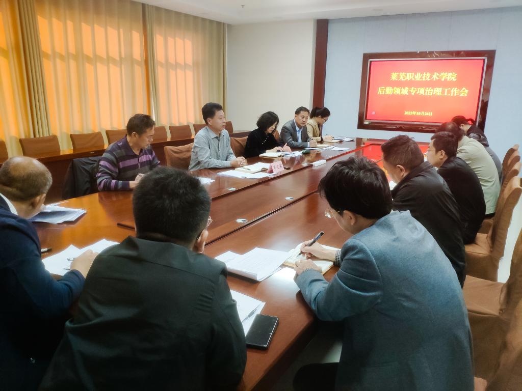 10月27日下午,学校召开后勤领域专项治理工作会议。副院长李允实出席会议。党政办公室、纪委(监察专员办公室)、党委学生工作部(学生处)、财务处、审计处、总务处等单位负责人参加会议。