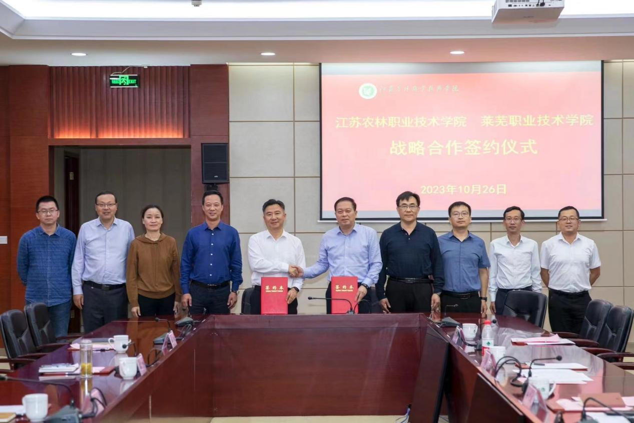 随后,双方开展了座谈交流,潘永圣简要介绍了江苏农林职业技术学院的基本情况,重点介绍了江苏农林职业技术学院在乡村振兴学院建设、乡村人才培养、对外交流合作等方面的经验和做法。座谈会上,徐运国、潘永圣共同签订了战略合作协议,根据协议,双方将在人才培养、专业建设、师资共享、科研创新等方面深入合作,充分发挥各自特色优势,拓展合作领域,创新合作模式,实现共赢发展。