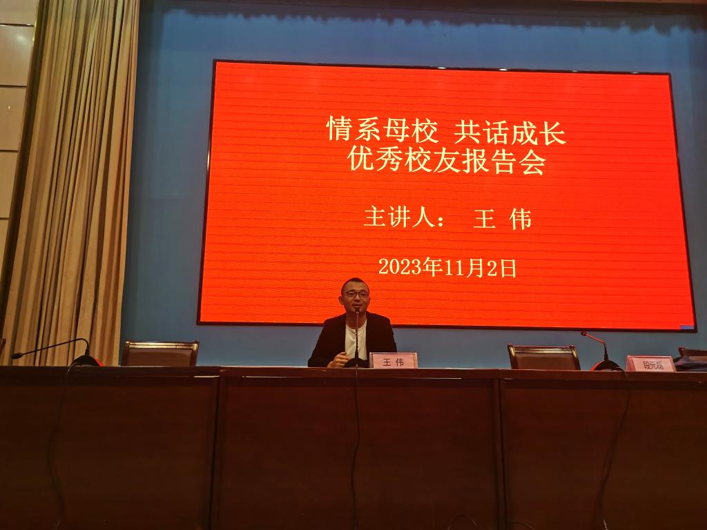 为充分发挥优秀毕业生的榜样示范作用,帮助学生端正学习态度,树立正确的就业观。11月2日晚上,学校举办“情系母校 共话成长”优秀校友报告会,邀请2011届优秀毕业生王伟返校作报告。报告会采用“线上+线下”方式同步进行,2023级全体新生参加。