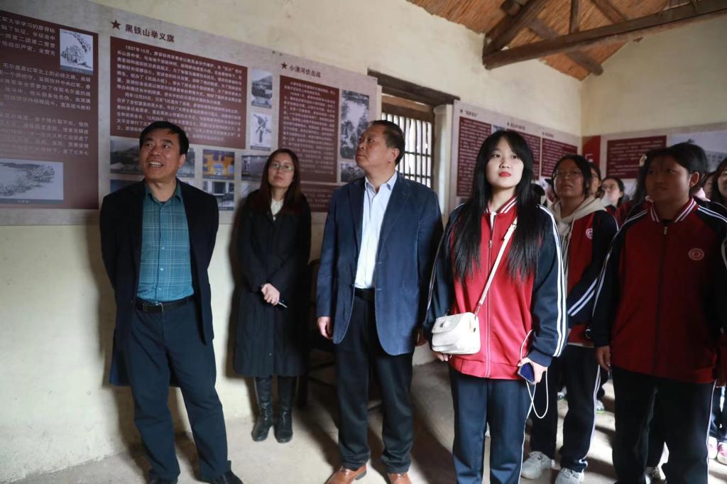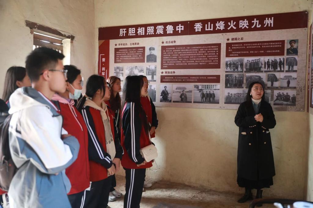 在廖容标抗战指挥所旧址,学校开展“行走的思政课”活动。思政老师为同学们讲授廖容标为革命事业披肝沥胆的光辉事迹,共同重温廖荣标的革命之路,感悟一代名将、人民功臣的革命情怀。
