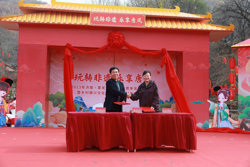 11月8日上午,“玩转非遗 乐享唐风”2023年济南·莱芜文旅惠民消费季非遗游园会暨乡村振兴文化顾问与中心村结对活动在莱芜区大王庄镇独路村唐朝板栗园举行。活动由市文化和旅游局主办,莱芜区文化和旅游局、莱芜区大王庄镇人民政府和学校共同承办。市文化和旅游局党组成员、副局长孙静,莱芜区委常委、宣传部部长田冲,莱芜区政协副主席尚翠芹,学校党委副书记、院长徐运国出席活动。