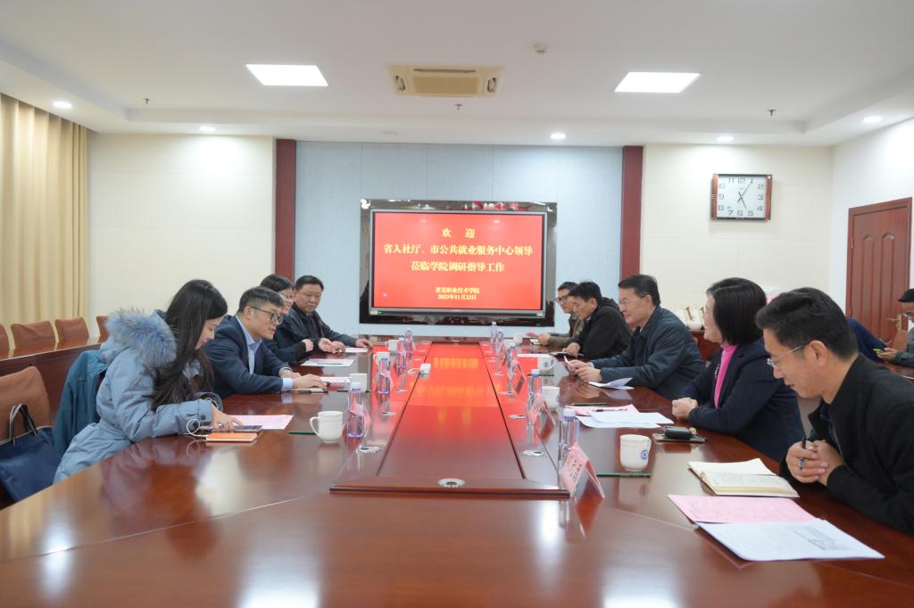 11月23日下午,省人社厅就业促进处处长董廷杰、市公共就业服务中心副主任张蕾一行来学校调研毕业生就业工作,学校党委书记孔祥敏陪同调研。