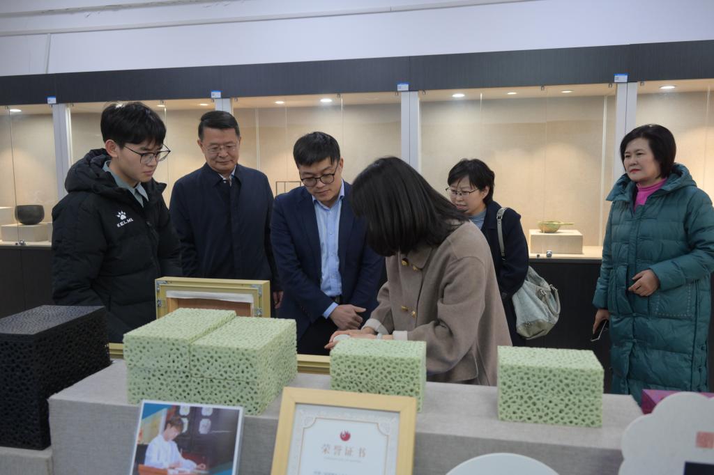 董廷杰一行先后参观了文物与艺术系实训室、机械工程实训中心和就业指导中心,对学校在打造特色专业、做好文化保护与传承,促进文化事业发展表示赞赏,希望学校依托生产性实训,进一步深化校企合作,为学生的就业扩大途径,提高就业质量,并对学校众创空间的建设提出了许多建设性意见。