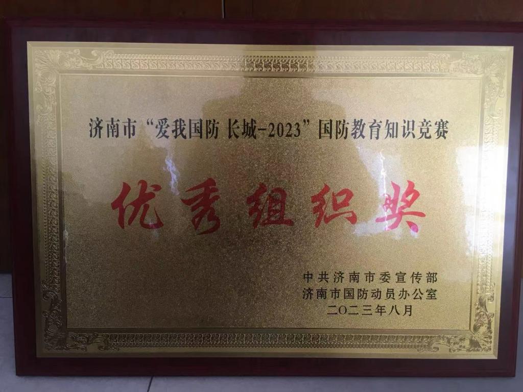 近日,市委宣传部和市国防动员办公室发布 “爱我国防 长城-2023”济南市国防教育知识竞赛结果,学校荣获“优秀组织奖”。