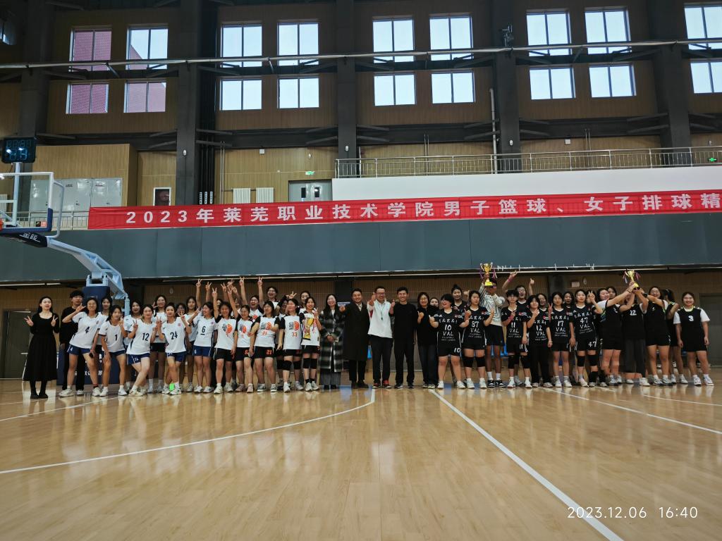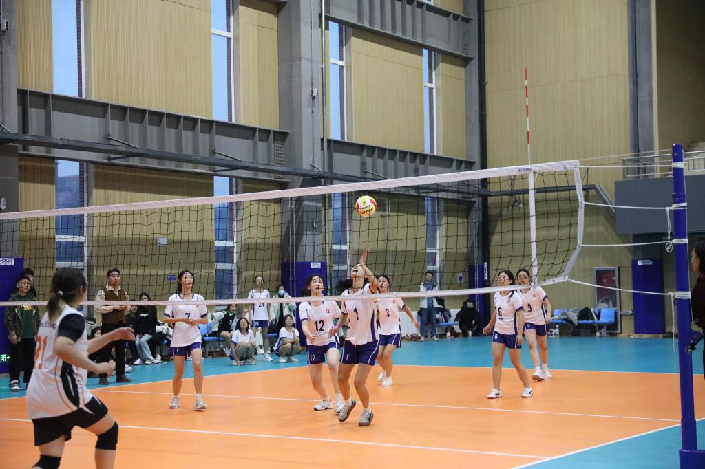 12月5号,学校首届女子排球精英赛在文体中心二楼球类馆举行。市体育局副局长宋豫,学校党委副书记、院长徐运国,党委委员、党委宣传部部长孙燕出席开赛式。