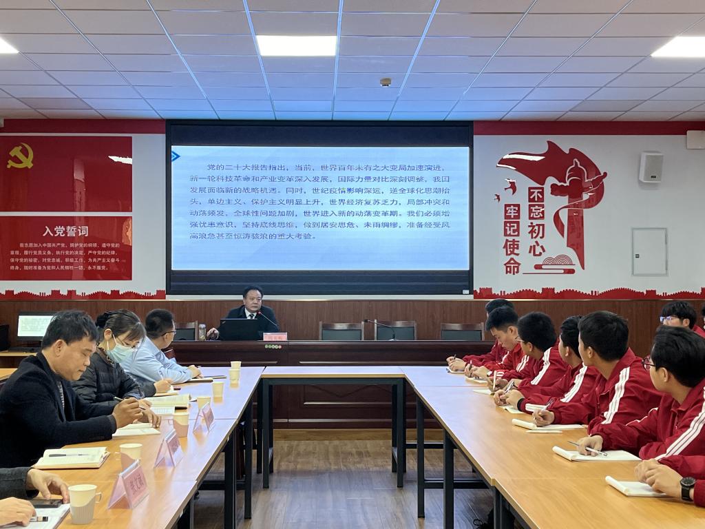 12月12日下午,党委委员、副院长周美栋为智慧商贸与旅游系师生讲思政课。思政教学部、智慧商贸与旅游系相关负责同志和部分学生共同聆听了思政课。