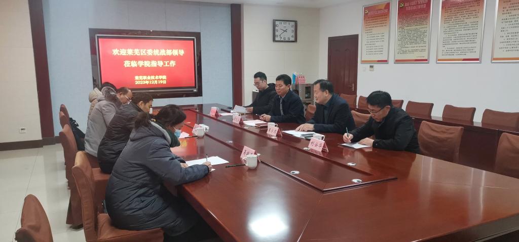 12月19日上午,莱芜区委统战部副部长、台办主任李遵国一行4人来校调研交流。党委副书记李允实出席座谈会并致辞,对外交流合作处、党委组织部(党委统战部)相关同志参加座谈。