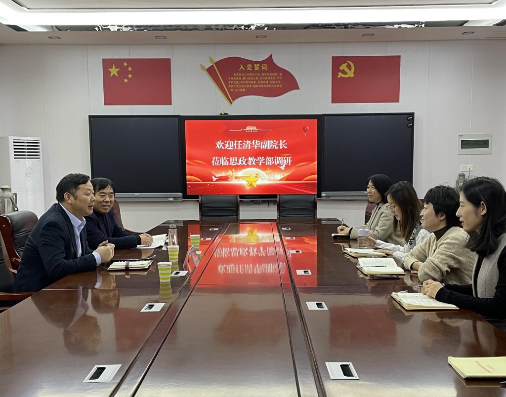 在详细了解相关情况后,任清华对思政教学部取得的各项成绩给予充分的肯定,并对下一步的工作提出了意见和要求。他指出,思政教学部要贯彻落实党政联席会制度和“第一议题”制度,持续抓实党建工作,实现党建与业务的深度融合。要持续做好党的最新理论成果第一时间的“三进”工作,近期尤其要做好习近平文化思想的学习、宣传、教育工作,开展习近平文化思想主题教研活动,在学生中进行习近平文化思想宣讲,推进习近平文化思想进课堂进头脑。要积极推进思政课改革创新,要善于在工作中找亮点,要结合学校的特色做好思想政治理论课建设工作。
