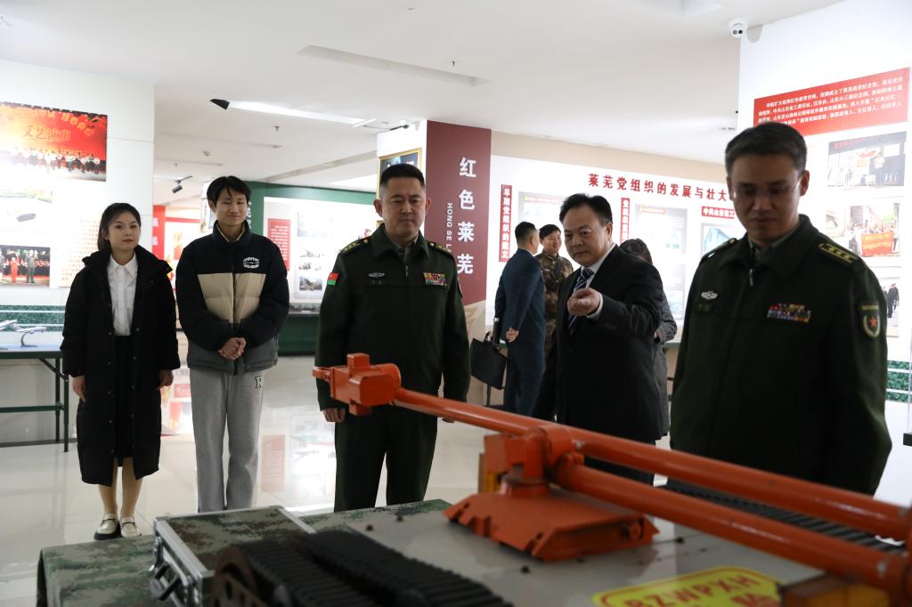 宣传活动后,莱芜区人武部领导在周美栋陪同下,参观了学校初心馆。