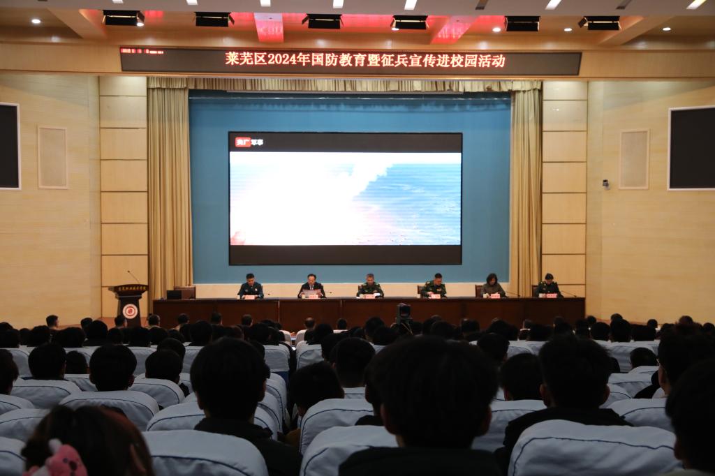 莱芜区人武部相关人员现场解读了2024年征兵优惠政策,并面对面精准宣传发动,从入役保障、服役发展、退役安置、自我发展等多个方面,结合莱芜区实际对同学们的提问进行了答疑。