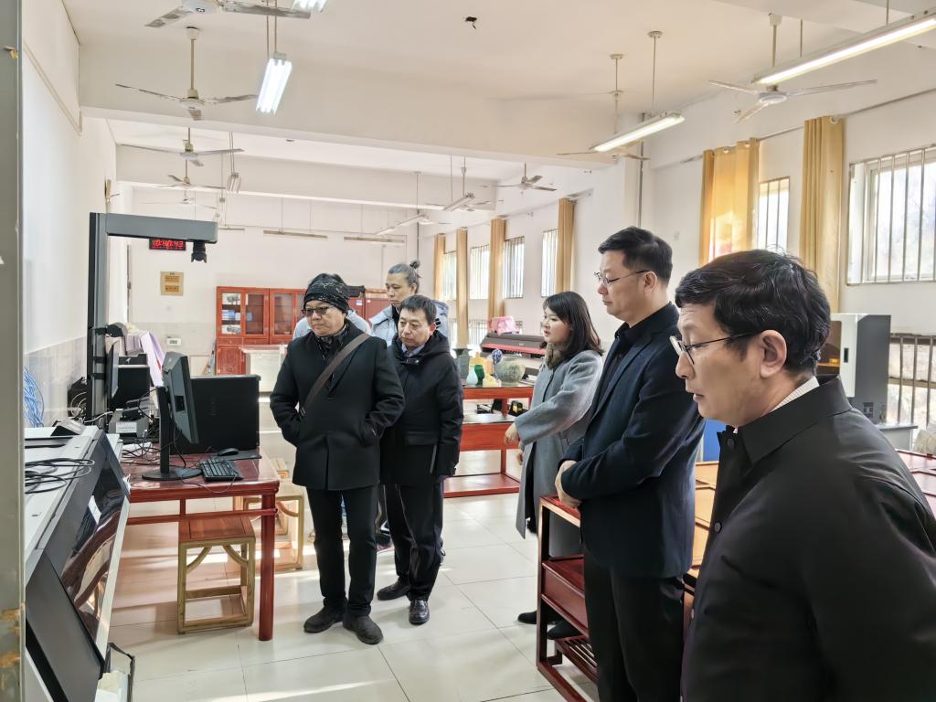 座谈会前,孙学东一行参观了文物与艺术系实训室,察看文物实训条件及建设情况。