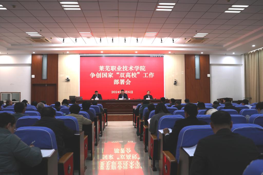 孔祥敏指出,争创国家“双高”校是提升学校核心竞争力、提高办学影响力的重要抓手和标尺,是开创高水平现代化职业院校建设新局面的必由之路,也是推动学校全方位高质量发展的强大引擎。他表示,今年是国家第二轮“双高计划”院校遴选之年,是学校奋起直追、迎头赶上的关键机遇期。全校上下要把争创国家“双高”校作为当前重点工作,心无旁骛地抓好落实。一要统一思想认识,提高行动自觉。抓住当前职业教育发展的重大机遇期,切实增强争创“双高”校的使命感和紧迫感,及时掌握相关政策导向,遵循职业教育发展规律和技术技能人才成长规律,在各自岗位上竭尽所能推动学校“双高”校争创工作。二要锚定建设目标,明确建设思路。抓好内涵建设,通过强化专业群建设、优化人才培养、建强师资队伍、提升服务区域发展能力等方面提高办学引领力;持续擦亮莱职品牌,提高办学影响力;纵深推进校企合作、创新办学投入机制、推进治理体系和治理能力现代化建设,提高办学生命力。三要强化责任担当,抓好任务落实。有主动担当的意识,想方设法破解问题,精琢磨、细研究、善创新,确保各项目标任务圆满完成。