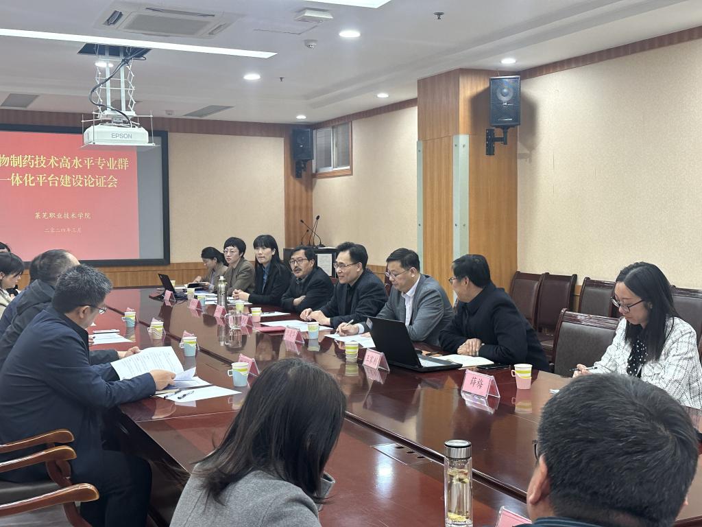 为加快推进生物制药技术高水平专业群一体化平台建设,3月31日上午,学校举行生物制药技术高水平专业群一体化平台建设专家论证会。山东中医药大学等四所院校四位知名课程建设专家到会指导,学校党委委员、副院长任清华出席会议并讲话,教务处、药品食品系负责同志和药品食品专业带头人、骨干教师和课程建设成员参加会议。