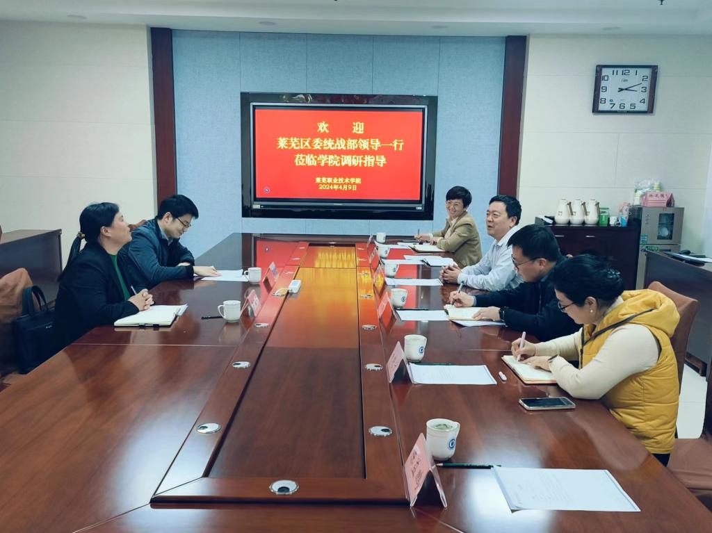 4月9日下午,莱芜区委统战部副部长、区侨办主任姜淑萍一行来学校调研交流华文教育工作。学校党委委员、副院长贾友军出席座谈会并致辞,党委委员、党委组织部(党委统战部)部长刘铖主持会议。