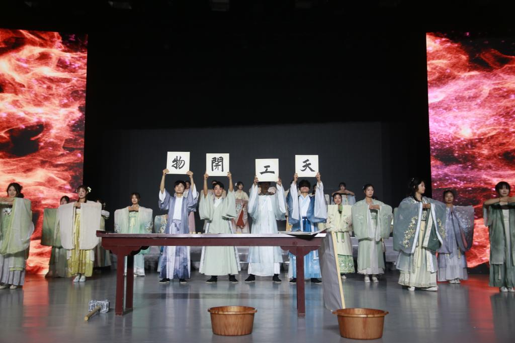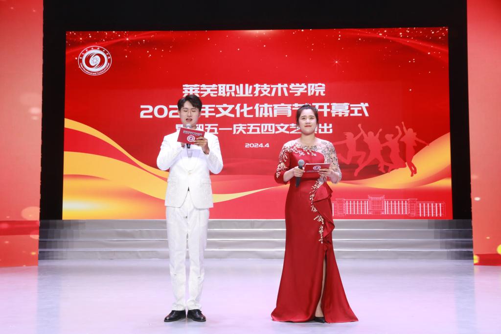 开幕式后,“迎五一·庆五四”文艺演出正式开始。演出共分为“最美舞台 最美主场”“因为热爱 所以可爱”“热血青春 不负韶华”三个篇章,主题鲜明、立意高远、催人奋进。来自学校15个社团共计200余名学生陆续表演了鼓乐《催征》、武术《精忠报国》、啦啦操《飞扬青春》、汉服秀《天工开物》、走秀《工匠风向标》、情景歌曲《无名的人》、情景剧《故人日记》、歌曲《青春不一样》、情景朗诵《那一年,中国青年正十八》等节目,邀请学校老师同台演唱歌曲《一起来更精彩》《在希望的田野上》《新的天地》。师生们用歌曲、舞蹈、朗诵等形式弘扬中华优秀传统文化,致敬所有顶天立地却平凡的普通人,精彩的舞台剧、婉转的唱腔、优美的舞蹈集中展现了莱职青年与时代同向、与祖国同行,胸怀家国、奋力逐梦的价值追求和近年来学校美育工作取得的丰硕成果。