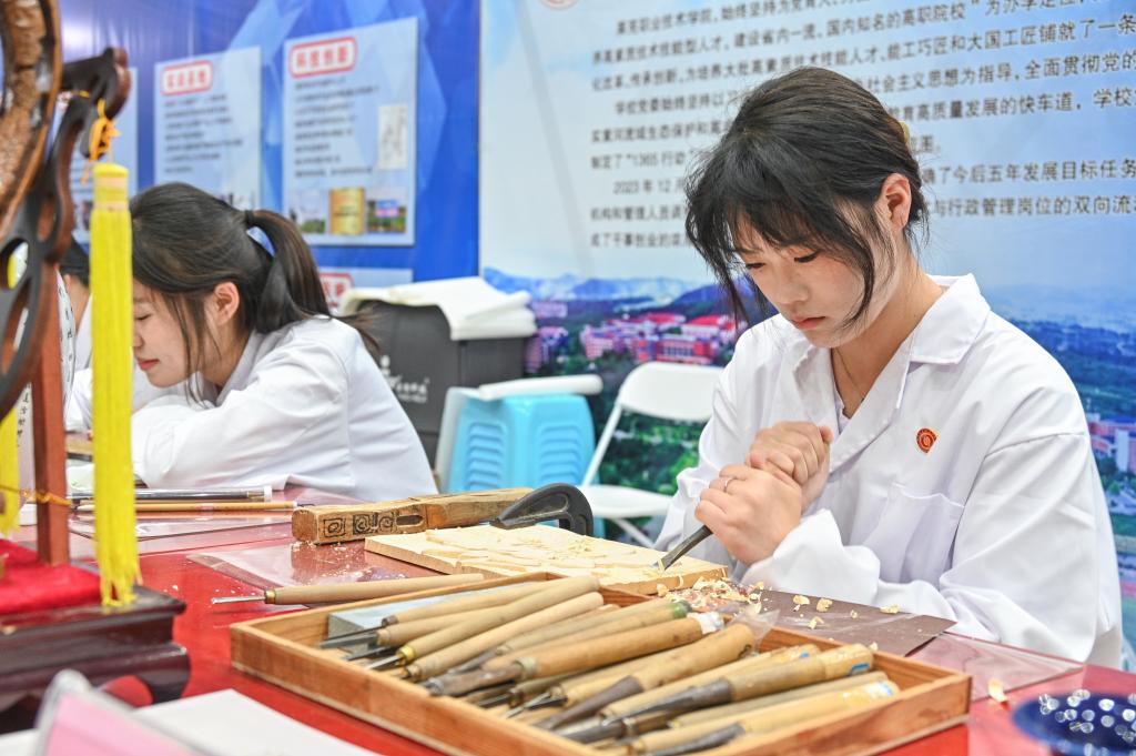 千年文化共传承。文物与艺术系现场展示的拓印技艺、木雕技艺、鱼拓技艺、古籍修复、青铜器修复、陶瓷修复、釉上新彩、内画制作等非遗项目,吸引现场观众驻足观看,并亲自体验制作。