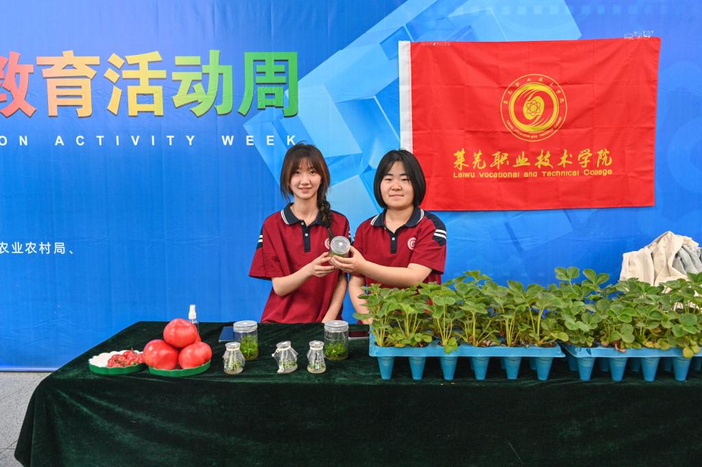 为传承中医药文化,药品食品系的师生现场制作山楂丸,引领观展人员感受中药传统手工技艺的魅力。草莓组培苗、草莓种苗展示了学校服务乡村振兴的新成果,通过培育优质草莓种苗,极大解决了种植户买苗难、买苗贵的问题。