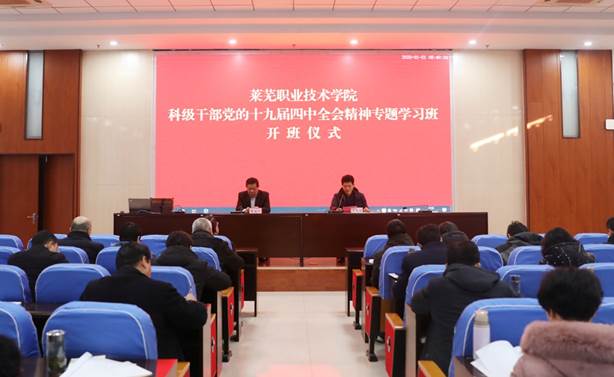 为深入学习贯彻党的十九届四中全会精神,打造高素质干部队伍,根据市委组织部的要求,1月21—23日,学院组织科级干部进行党的十九届四中全会精神专题学习。党委书记董海燕到会讲话,纪委书记李允实主持会议。