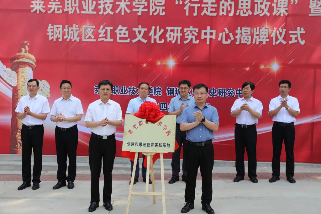 活动还举行了济南市钢城区红色文化研究中心、学校党建和思政教育实践基地揭牌仪式。学校党委副书记、院长徐运国,济南市钢城区委常委、组织部部长范晓琨,济南市钢城区委组织部常务副部长梁升,学校党委委员、副院长任清华,党委委员、党委组织部(党委统战部)部长刘铖出席活动。揭牌仪式由任清华主持。