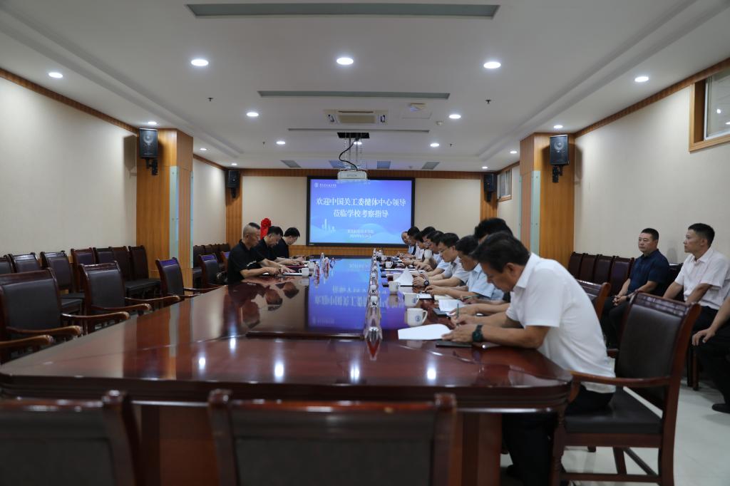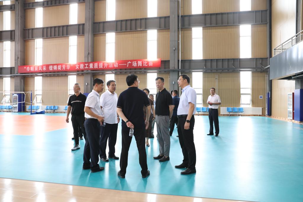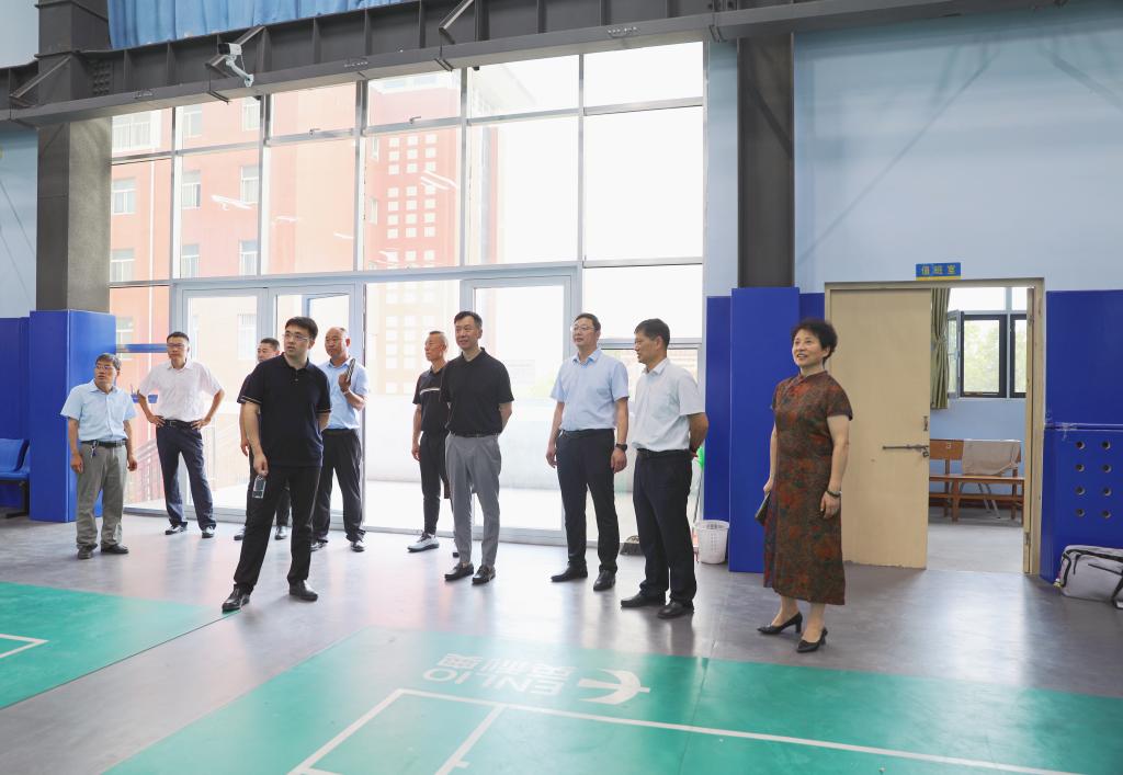 会后,调研组一行实地参观了文体中心、乒羽馆、户外篮球场、文物与艺术系,了解学校体育场馆建设及特色专业发展情况。
