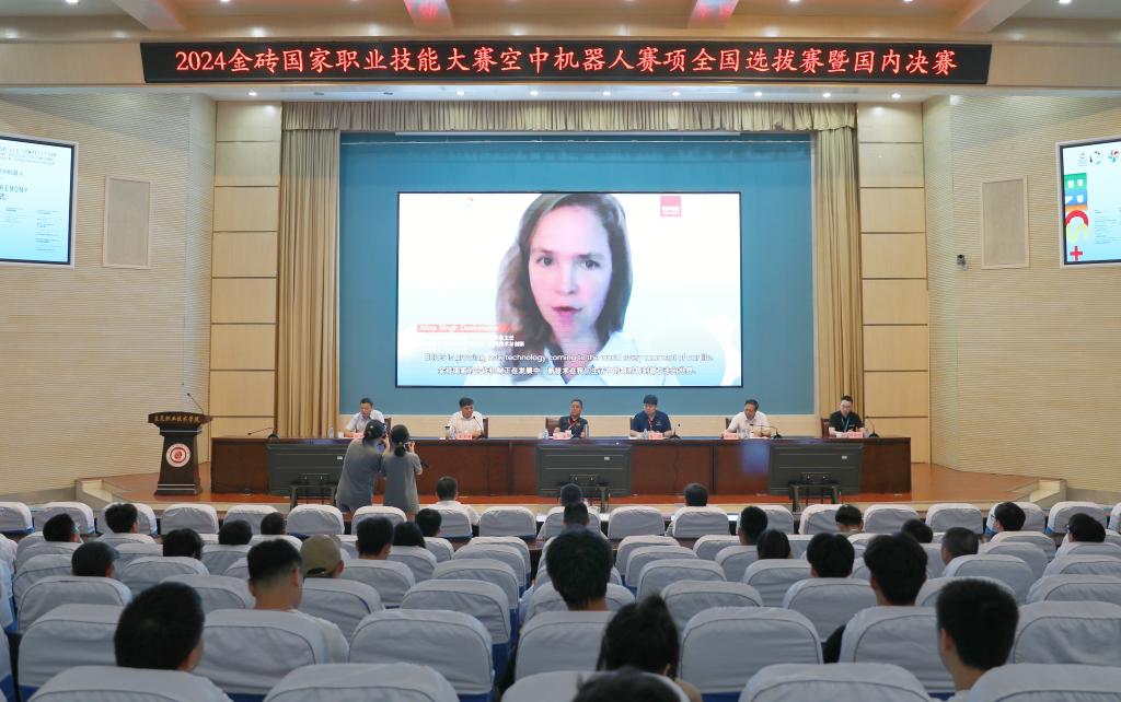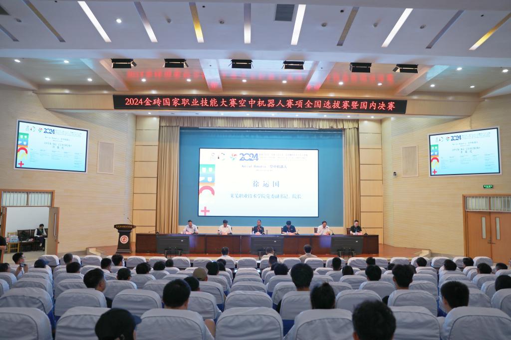 徐运国代表学校全体师生向各位领导、嘉宾、参赛队伍的到来表示热烈的欢迎,向对本次大赛给予支持、指导和帮助的各级领导和兄弟院校表示衷心的感谢。他简要介绍了学校的基本情况、办学特色、专业发展以及近年来取得的成果。他表示,作为具有高水准和鲜明职业教育特色的权威赛事,金砖国家职业技能大赛聚焦高端制造、数字经济、新产业、新技术等重点领域,旨在提升金砖+国家职业院校师生在创新、协调、组织、合作等方面的能力,丰富金砖+国家职业院校和企业交流与合作内容,培养金砖国家国际化高质量技术技能人才与人文交流人才。本届金砖国家职业技能大赛空中机器人赛项能在学校举办,是对学校建设发展的充分肯定,更是对学校工作的激励与鞭策。学校将精心组织,周密安排,营造优质竞赛环境,提供全方位服务保障,把本次大赛办成一届高标准、高水平、有特色、有影响的赛事。同时,学校将以本次大赛为契机,进一步加强教育教学改革和技能人才培养工作,持续深化产教融合、校企合作,为培养更多具有国际视野的高素质技术技能人才,提升我国职业教育的国际竞争力贡献力量。