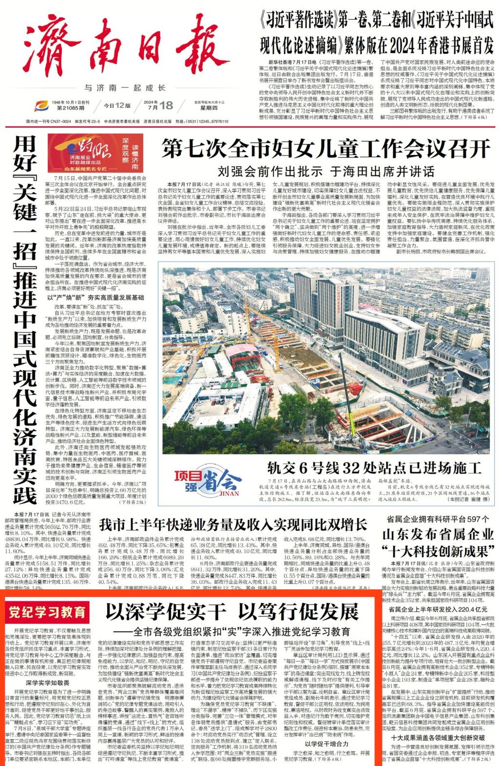 7月18日,济南日报刊发《以深学促实干 以笃行促发展 济南各级党组织紧扣“实”字深入推进党纪学习教育》专题报道,其中对学校推进党纪学习教育的经验做法进行了推广。