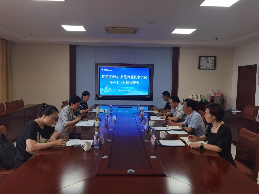 7月24日下午,莱芜区政协来学校对接科技信息报送工作。莱芜区政协副主席高华,学校党委委员、副院长周美栋出席会议。莱芜区政协相关同志,学校科研处、对外交流合作处相关负责人及教师代表共同参会。