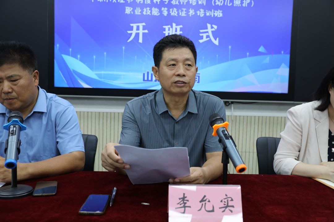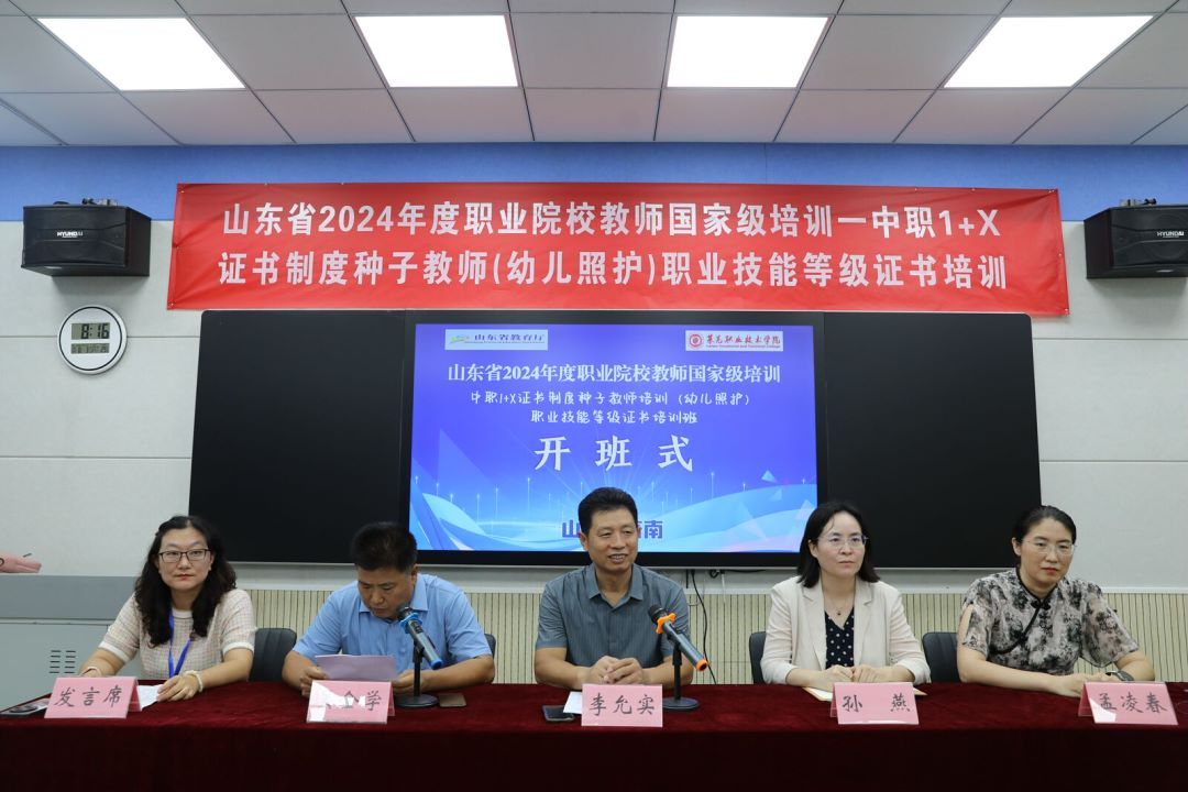 8月3日上午,山东省2024年度职业院校教师国家级培训—中职1+X证书制度种子教师培训(幼儿照护)职业技能等级证书培训开班式在学校举行。学校党委副书记李允实,党委委员、党委宣传部部长孙燕出席开班式。教师发展中心、医学技术与护理系相关负责同志,来自全省29所中职学校的30名骨干教师参加会议。