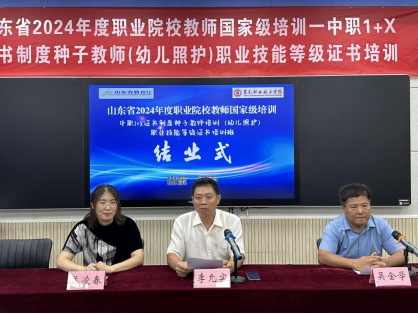 8月20日上午,学校举行2024年度山东省职业院校教师国家级培训—中职1+X证书种子教师培训(幼儿照护)结业式,学校党委副书记李允实出席并发表讲话,教师发展中心、医学技术与护理系相关负责同志以及来自全省29所中职学校的30名骨干教师参加仪式。