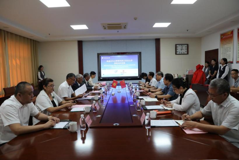 徐运国对吉尔吉斯斯坦国立技术大学一行表示热烈欢迎,并介绍了学校的办学历史、特色专业、师资力量以及人才培养等基本情况,回顾了学校近年来国际交流与合作取得的成果以及与吉尔吉斯斯坦国立技术大学前期的合作历程。他表示,中吉两国人民比邻而居,传统友好源远流长,人文交流丰富多彩。吉尔吉斯斯坦国立技术大学作为中亚地区知名学府、吉尔吉斯斯坦共和国最大的技术大学,拥有优秀的教育资源、丰富的师资力量、雄厚的科研实力,希望通过此次访问,双方进一步深化沟通交流,在专本贯通、科学研究、资源共享、师生互访等方面建立紧密的合作关系,努力培养更多具有国际视野的高技能人才,共同谱写中吉教育合作新篇章。