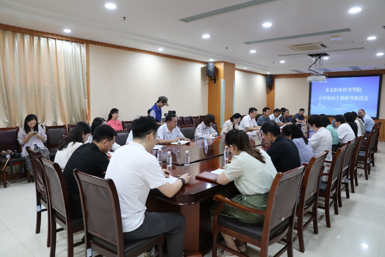 9月9日上午,学校召开庆祝第40个教师节座谈会。党委书记孔祥敏,党委副书记李允实,党委委员、党委宣传部部长孙燕出席会议。2024年度学校“最美教师”(团队负责人)“师德标兵”青年教师代表及相关职能处室负责同志参加会议。会议由李允实主持。