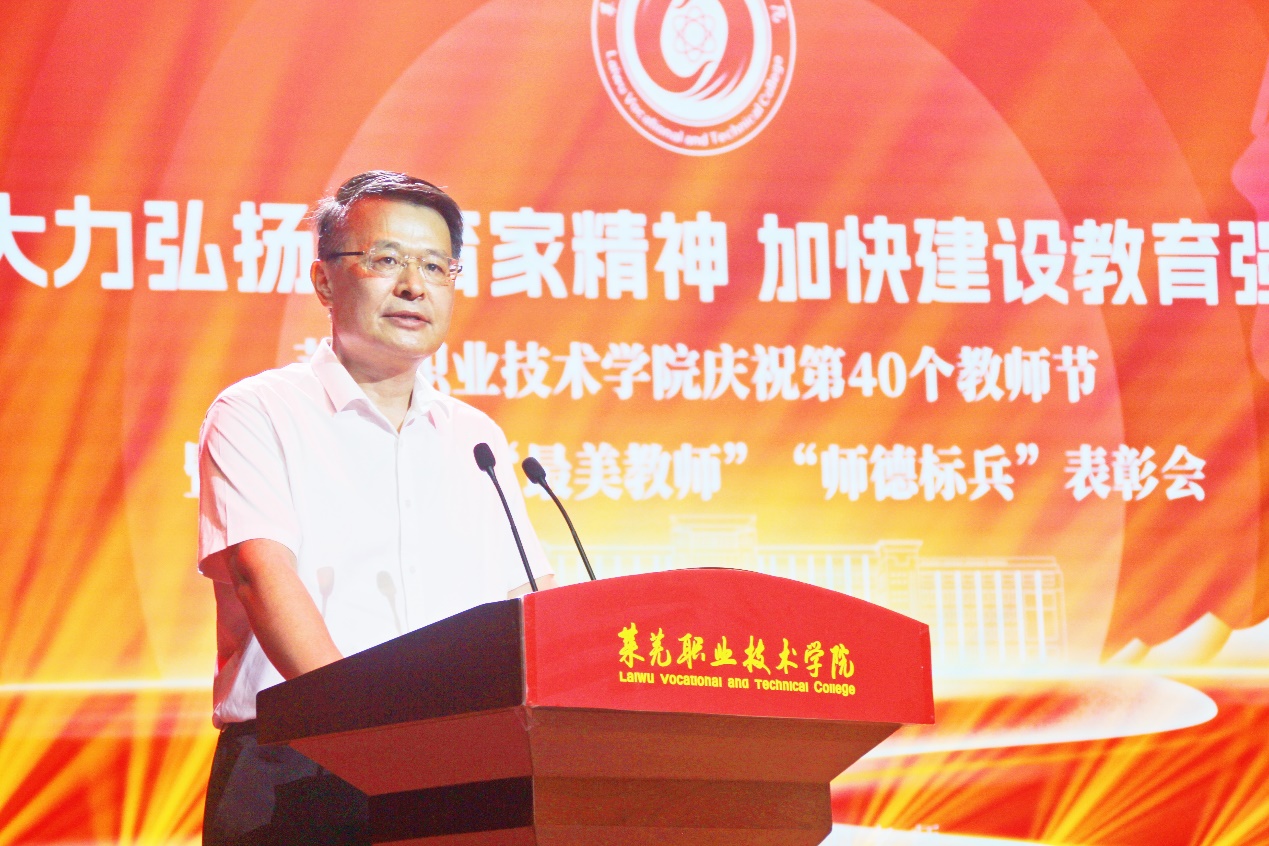 孔祥敏强调,今年教师节的主题是“大力弘扬教育家精神,加快建设教育强国”,学校将认真贯彻落实《中共中央 国务院关于弘扬教育家精神加强新时代高素质专业化教师队伍建设的意见》,健全师德师风建设长效机制,提升教师教书育人能力,树牢“能上能下”选人用人“风向标”,深化“职务职称双向流动”的队伍建设机制改革,大力营造安心从教、热心从教、精心从教、终身从教的良好氛围,全面提升广大教师的获得感、荣誉感和幸福感。希望全体教职员工以德育人、担负好立德树人的职责,博学通达、履行好授业解惑的使命,同心同德、展现出助力发展的担当,为建成特色鲜明、走在前列的高水平现代化职业院校作出新的更大贡献。