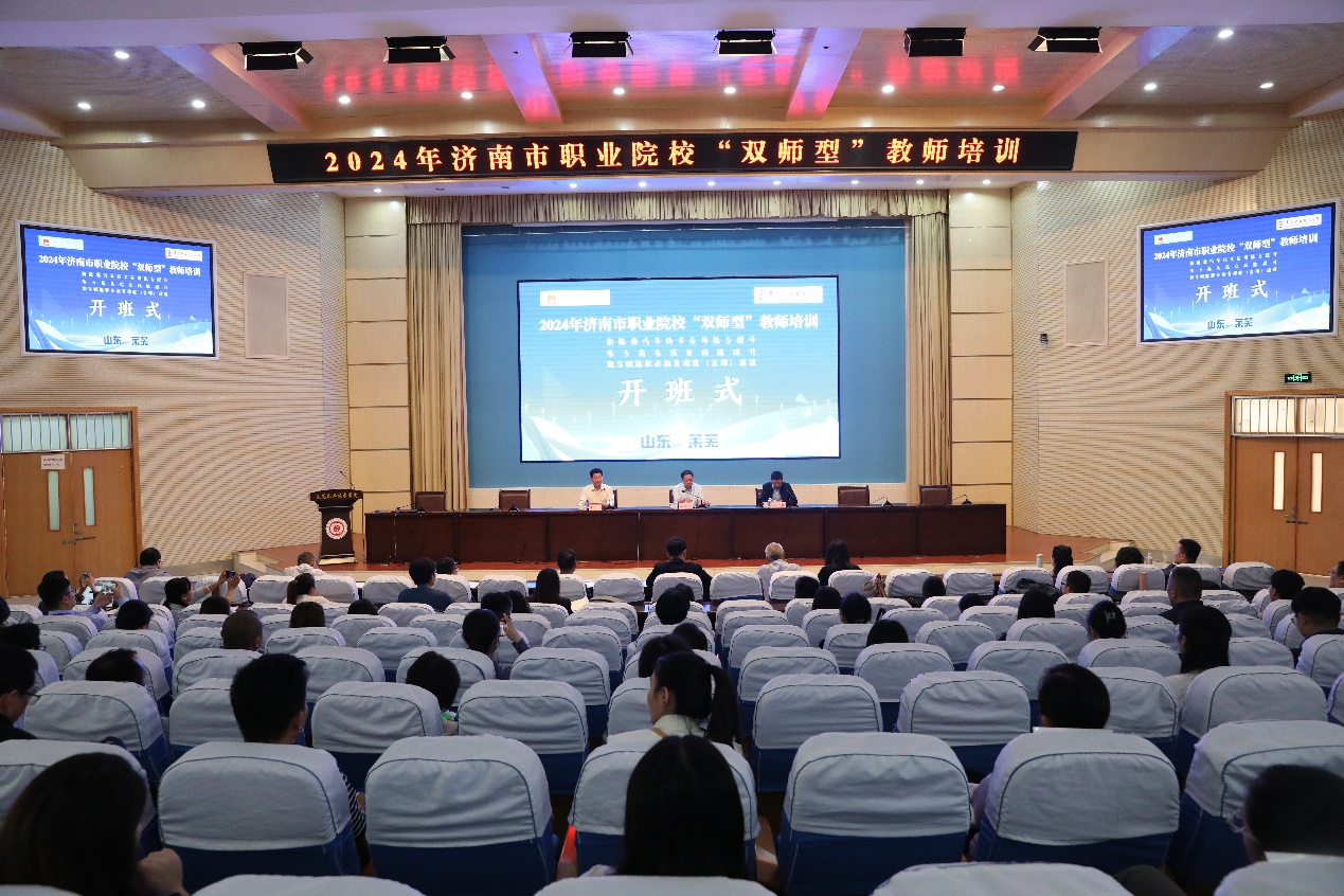 9月24日上午,学校在图书信息中心报告厅举行2024年济南市职业院校“双师型”教师培训开班式。市教育局职业与高等教育处处长杨林,学校党委副书记、院长徐运国,党委副书记李允实出席开班式。学校教师发展中心、相关系部负责同志,以及来自全市30余所中高职学校的90余名骨干教师参加会议。开班式由李允实主持。