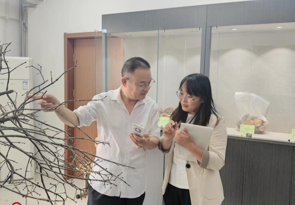 会后,专家与工作室成员到药品食品室中药标本室对现存标本进行了鉴别,并就中药炮制、白花丹参引种驯化进行了现场指导。