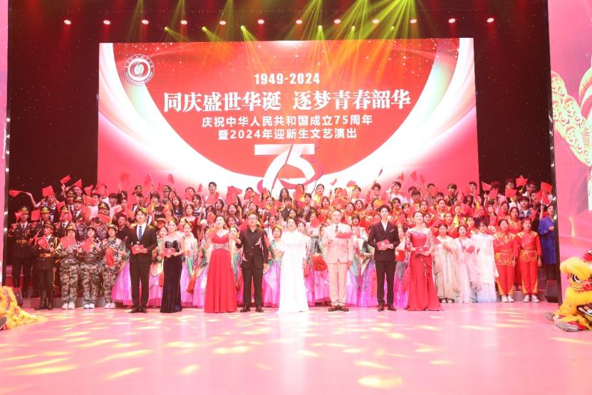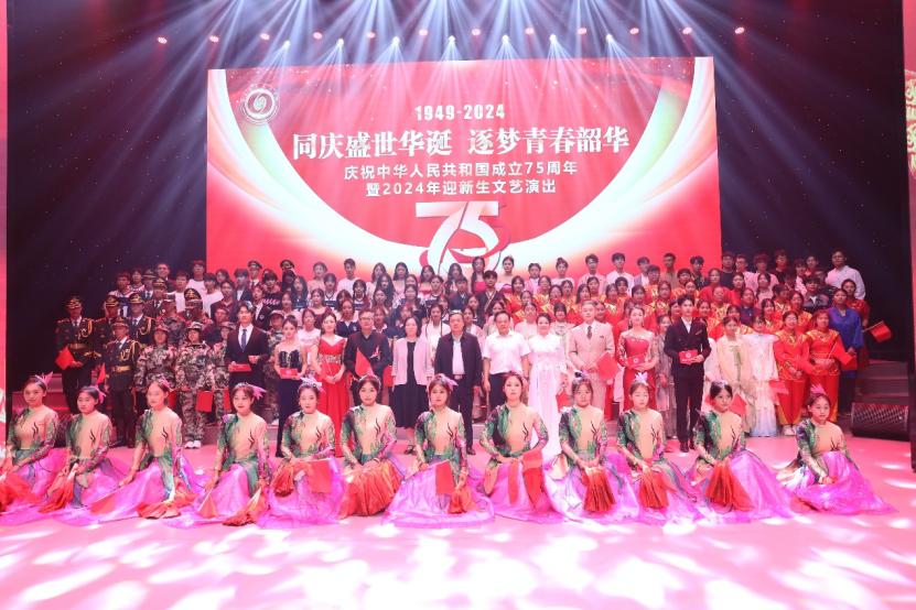 同庆盛世华诞,逐梦青春韶华。9月27日下午,学校举行庆祝中华人民共和国成立75周年暨迎新生文艺演出。党委委员、副院长贾友军,党委委员、副院长周美栋,党委委员、党委宣传部部长孙燕出席活动。各部门负责人与1000余名2024级新生代表共同观看了演出。本场演出进行了同步直播。
