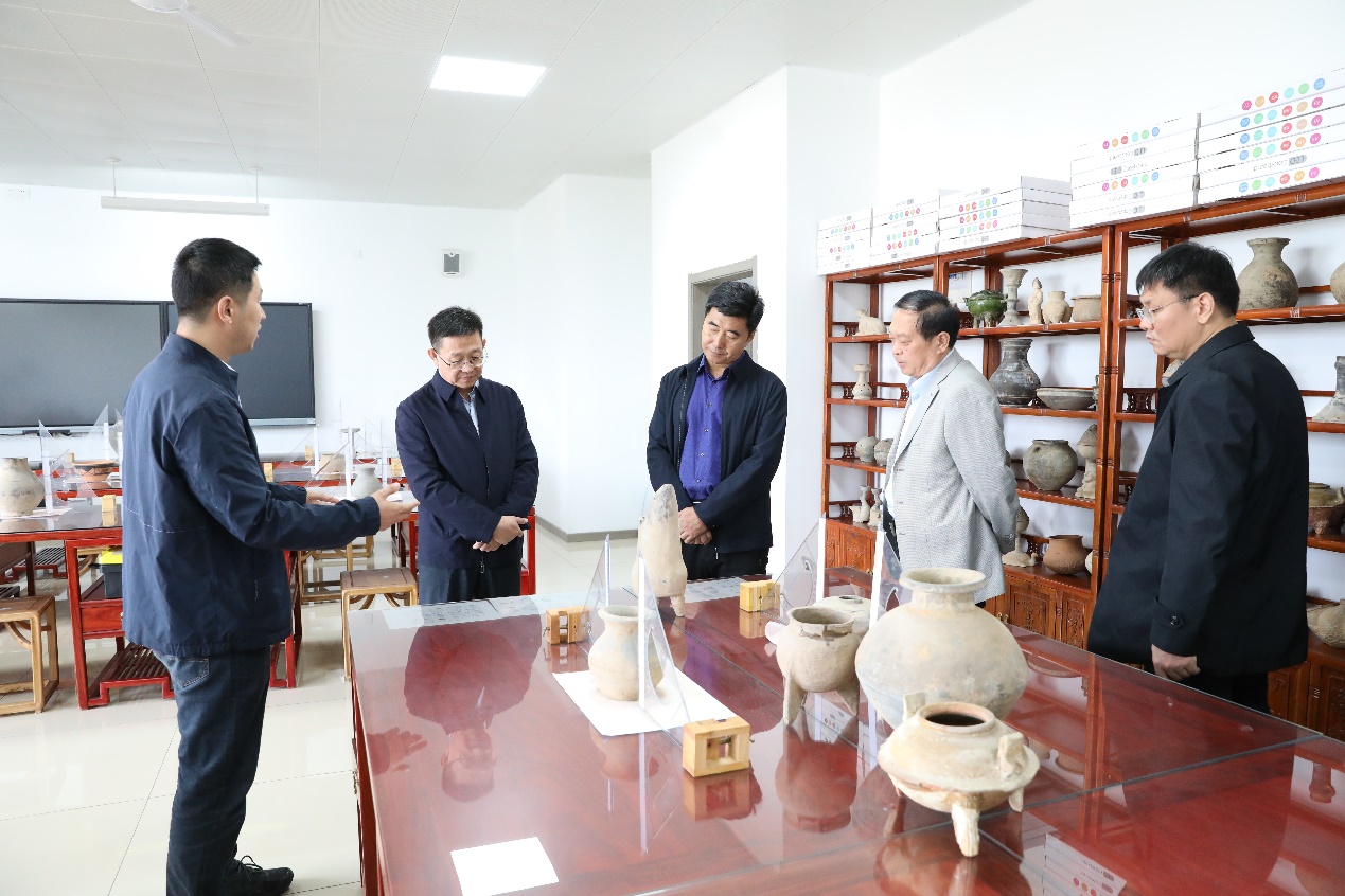 座谈会后,在徐运国和刘铖陪同下,唐勋一行实地调研了学校文物与艺术系、初心馆、大学生事务服务中心。