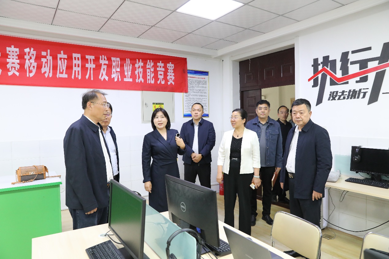 10月9日下午,山东省职业教育和产业人才研究院来学校考察调研并就新一代信息技术专业发展进行座谈指导。山东省职业技术教育学会副秘书长、山东省教育厅(省委教育工委)职业教育处原一级调研员孟令君,山东商业职业技术学院原副校长、教育部职业院校信息化教学指导委员会委员徐红,学校党委委员、副院长贾友军出席座谈会。山东省职业教育和产业人才研究院相关负责人,学校教务处、发展规划处、人工智能系、实训管理中心等单位负责人参加座谈会。