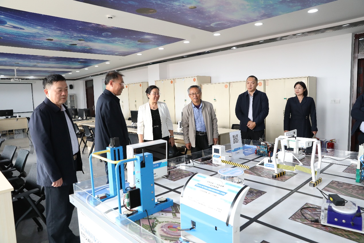 会前,贾友军陪同孟令君一行实地调研了学校人工智能系实训室。