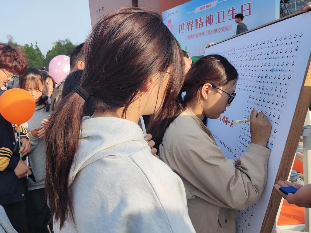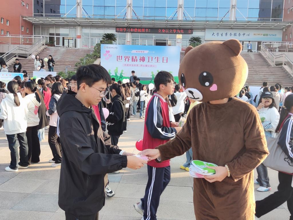 2024年10月10日是第33个世界精神卫生日,为传播普及精神卫生知识,呵护学生心理健康,学校以“共建共治共享,同心健心安心”为主题,在图信中心北广场组织开展2024年世界精神卫生日户外宣传体验活动,帮助同学们掌握精神卫生常识,提高心理健康水平。纪委(监察专员办公室)相关负责人、各系辅导员及约600名学生代表参加了本次活动。